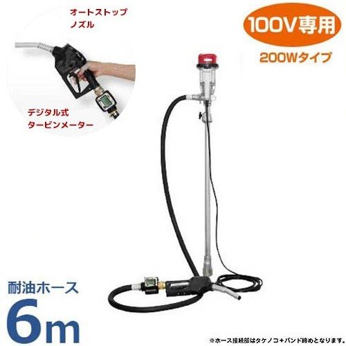 工進 電動ドラムポンプセット FR-200+デジタル流量計+オートストップノズル+耐油ホース6m付き (AC100V用)