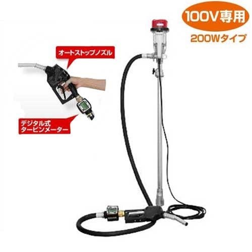 工進 電動ドラムポンプセット FR-200+デジタル流量計+オートストップノズル+耐油ホース2m付き (AC100V用)