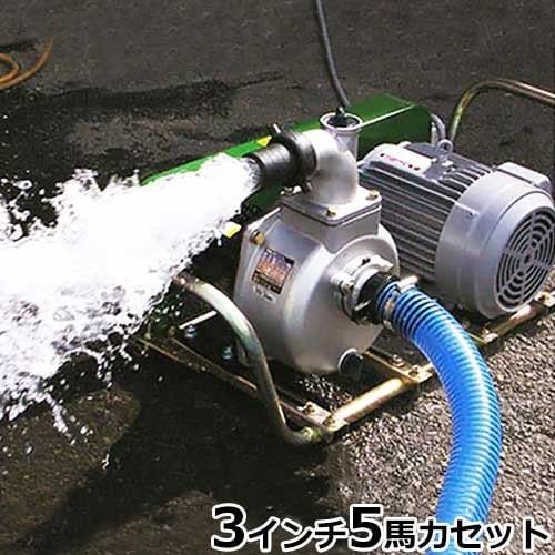 ミナト 3インチ ベルト掛けポンプセット 《3相200V5馬力全閉モーター+サクションホース4m付》