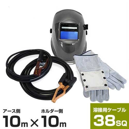溶接オールキット 38SQケーブル/Dセット 《ホルダー付コード10m+アースクリップ付コード10m+スズキッド 液晶式自動遮光面EB-200A2+溶接用皮手袋》