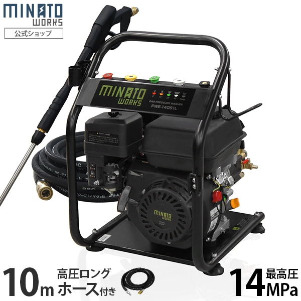 ミナト エンジン式 高圧洗浄機 PWE-14081L (10m高圧ホース+オイル充填+試運転サービス付き)