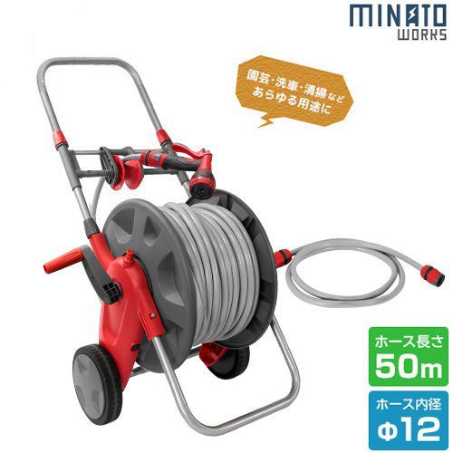 ミナト ホースリール GHL-5012 《内径12mmホース×50m巻き+多機能ノズル付きセット》