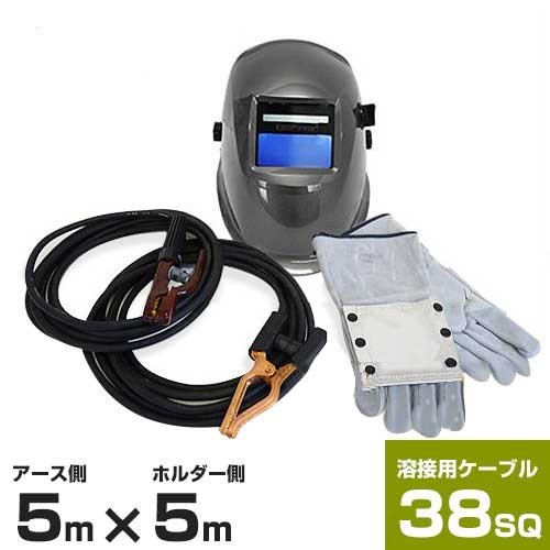 5m×5mの38(SQ)溶接用ケーブルに、高性能の液晶自動遮光面と溶接用皮手袋がセットになったお買得商品です。溶接機と一緒にご購入頂くことで、到着後直ぐにお使いいただくことが可能です。