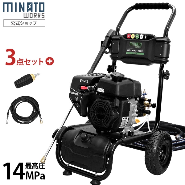 ミナト エンジン式 高圧洗浄機 PWE-1408K 《回転ノズル+10m延長ホース付き3点セット》 (オイル充填+試運転サービス付き)