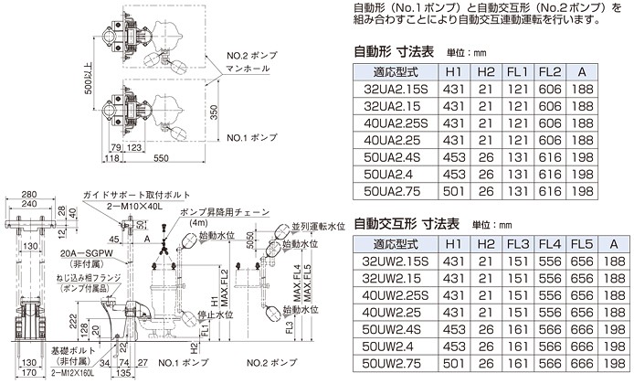 ※ガイドフック取付ボルトは水中ポンプ付属品を使用します。 |