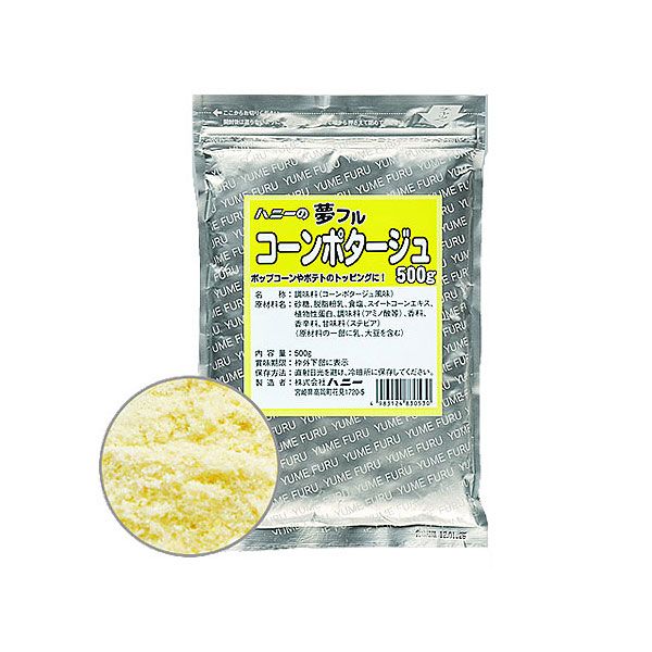 砂糖、食塩、脱脂粉乳、蛋白加水分解物、スイートコーンパウダー、調味料(アミノ酸等)、香料、香辛料抽出物、甘味料(ステビア)(原材料の一部に、乳、大豆を含む) |
