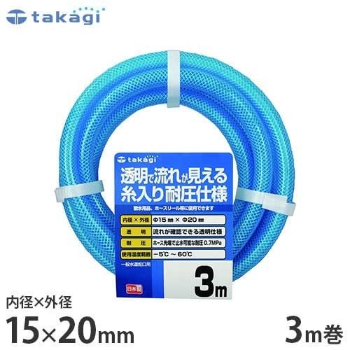 タカギ 園芸散水用ホース 『クリア耐圧ホース15×20』 3m カットホース PH08015CB003TM (ホース内径15mm)