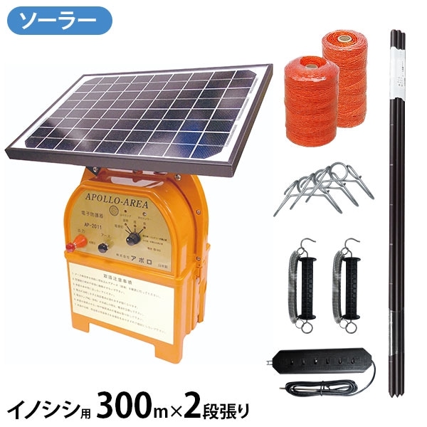 アポロ ソーラー電気柵 エリアシステム AP-2011-SR FRP支柱仕様 イノシシ用 300m×2段張りセット