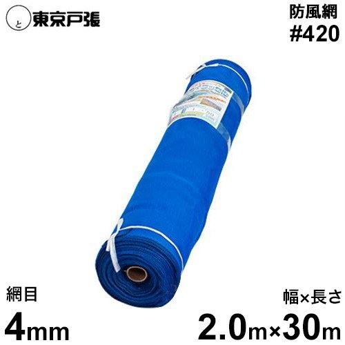 防風網/防風ネット スカイラッセル #420 青 網目4mm/幅2.0m×長さ30m