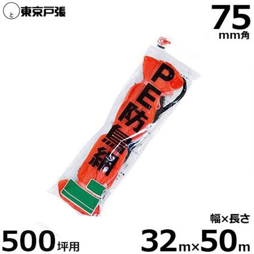 『防鳥網』 B500S (約500坪用/75mm角/幅32.0m×長さ50.0m/オレンジ色)