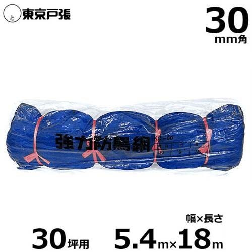 防鳥網 防鳥ネット 強力タイプ KC30S 30mm角/幅5.4m×長さ18.0m (約30坪用/青色)